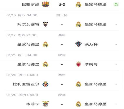 皇馬未來賽程: