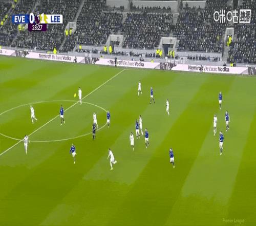 第27分鐘,利茲聯(lián)中前場右側(cè)高位逼搶斷球反擊,斯塔赫根博格來個撞墻配合后下底倒三角傳中,阿倫森前點一讓,他身后后排跟進(jìn)的賈斯汀小禁區(qū)前沿迎球大力推射半空門得手,利茲聯(lián)1:0首開紀(jì)錄。第34分鐘,利茲聯(lián)右路快攻,阿倫森禁區(qū)前沿策應(yīng)直塞,博格跟進(jìn)突入禁區(qū)倒三角橫傳門前,勒溫小禁區(qū)內(nèi)搶點超近距離推射,BOOM的一聲皮球被門柱擋出,埃弗頓逃過一劫。