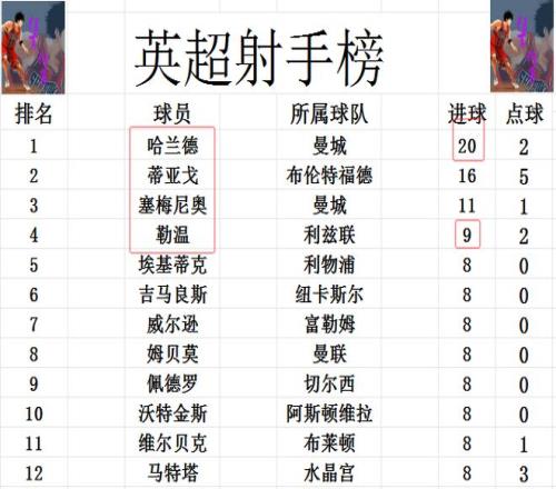 射手榜方面,哈蘭德20球穩(wěn)居榜首,蒂亞戈16球緊隨其后,塞梅尼奧11球排在第3。勒溫今天沒能進(jìn)球,還是9球排在第4,佩德羅,姆貝莫等人8球剛好擠入前十。